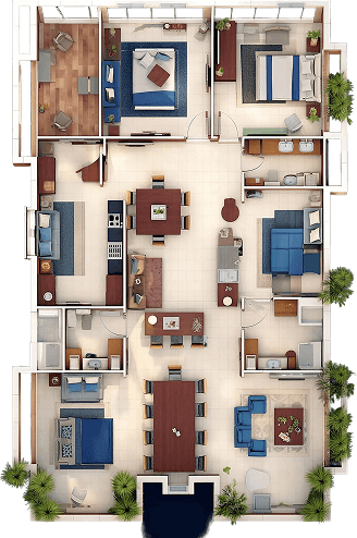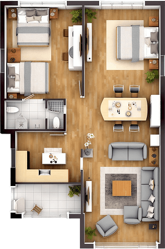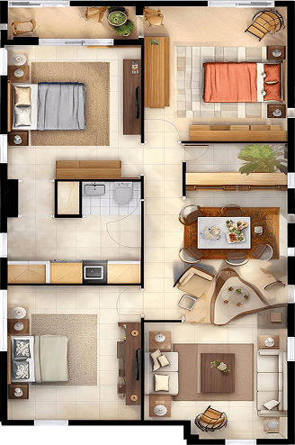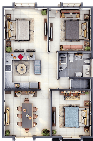The bedroom is a private retreat—a calm, restful zone meant to restore both body and mind. Typically furnished with a bed, nightstands, and soft lighting, it invites tranquility and a sense of personal comfort.